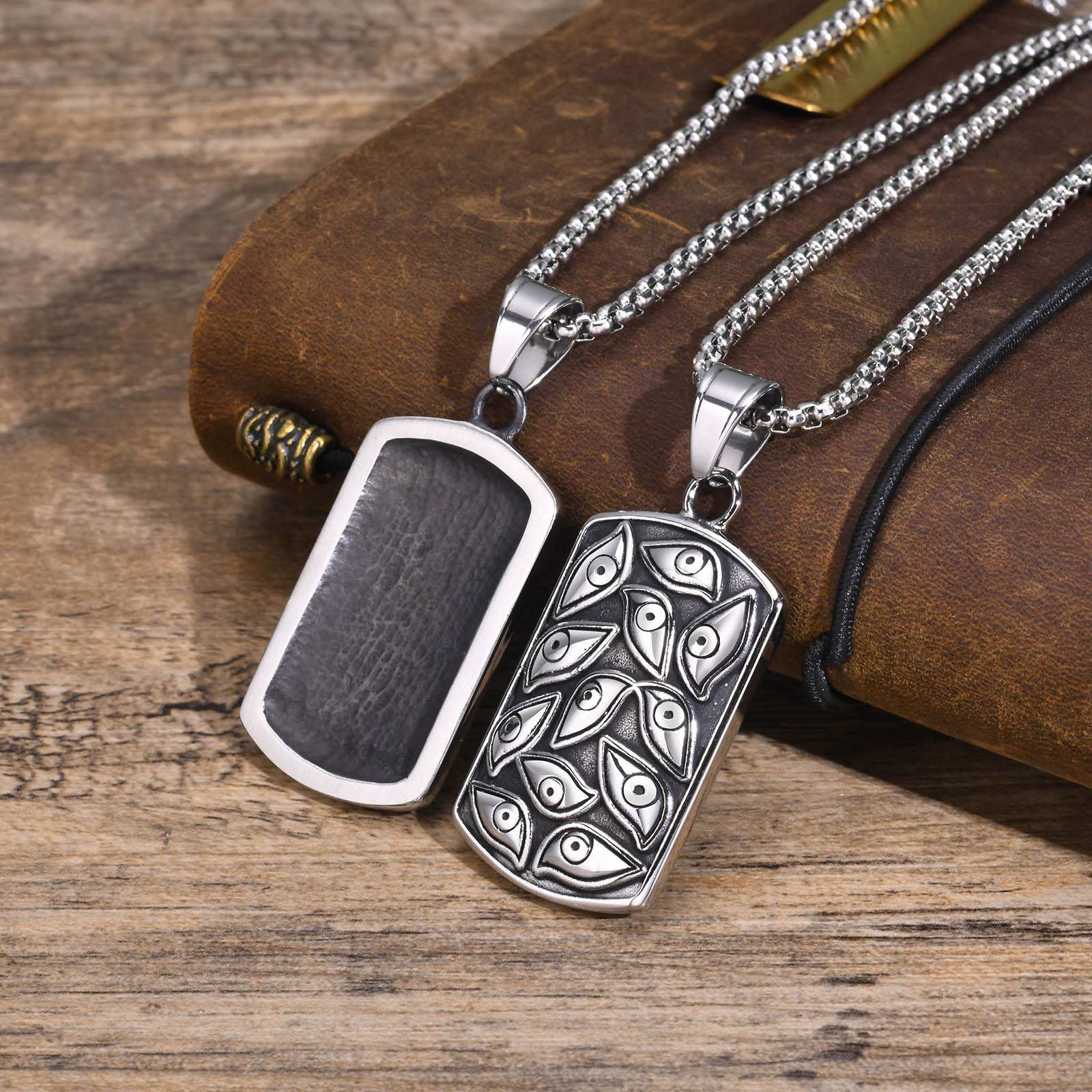 Mprainbow Men's Gothic Eye of the Devil Necklaces, Cool Punk Stainless Steel Square Dog Tag Pendant Collar, Gifts to Him PN-1915S-55cm – Sumsfashion